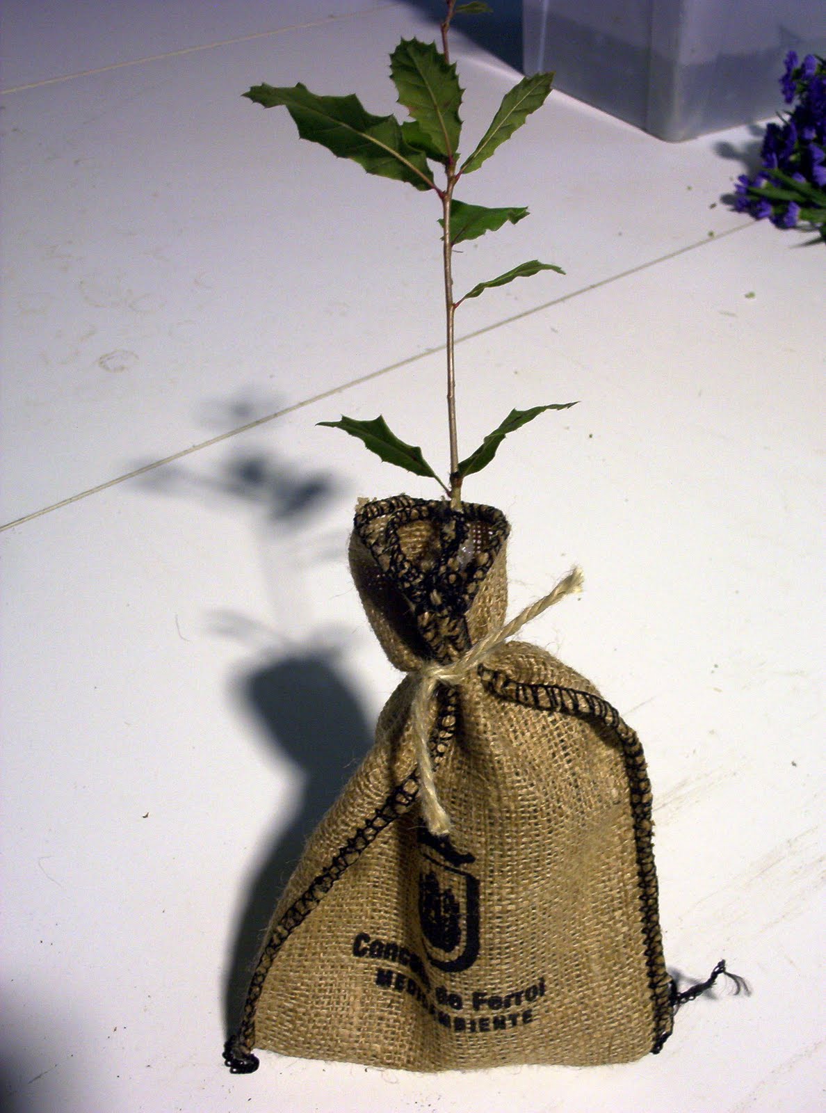 La empresa Occidente Diseño y Comunicación de Ferrol confió en nosotros para que concretamente le preparásemos carvallos (Quercus robur) presentados en un saco de yute serigrafiado para el Concello de Ferrol.